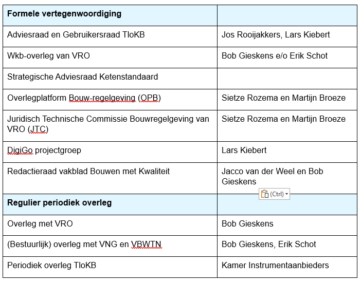 - optreden als spreekbuis van de leden voor afstemming met de wetgever, vertegenwoordigers van het bevoegd gezag en de bouwsector.
